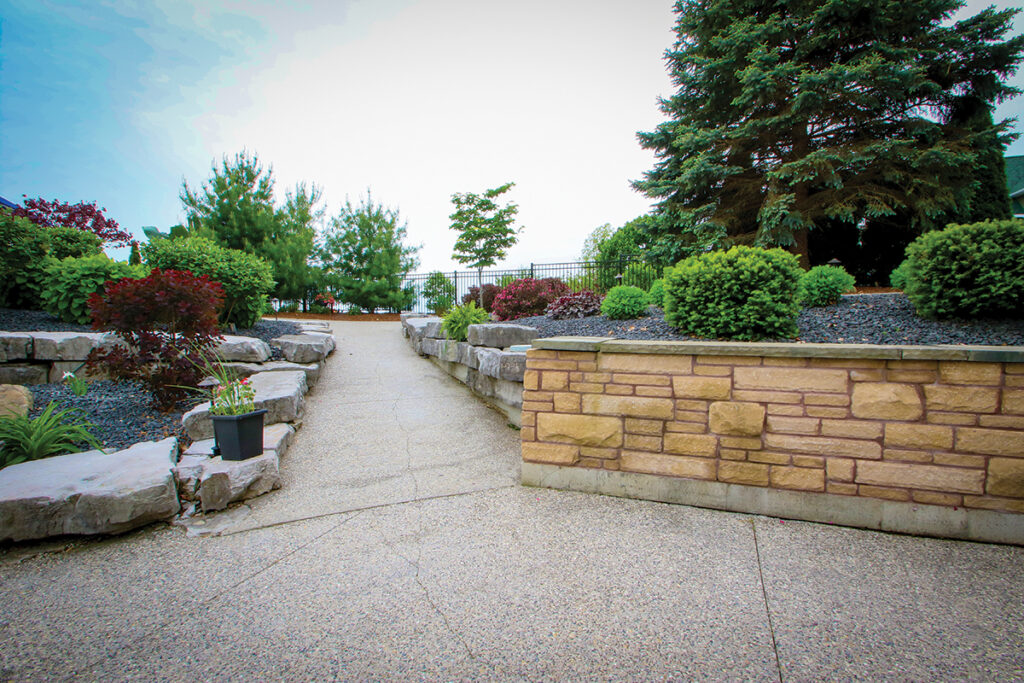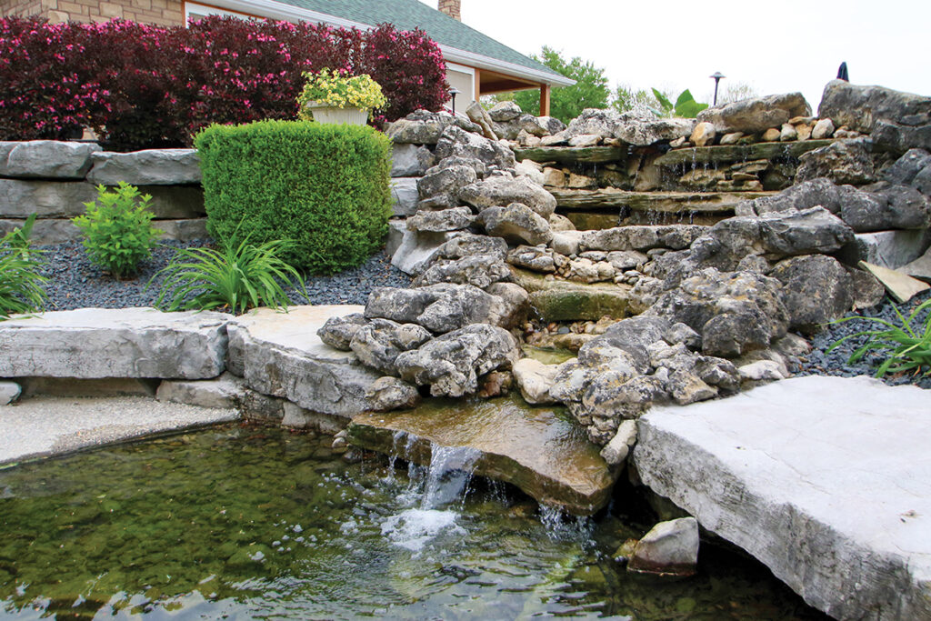 Perhaps the centerpiece of the Backyard Oasis—one that tends to draw the most eyes and summon the most gasps—is the natural-stone waterfall. Standing at around six-to-seven-feet tall, the whole structure is modeled after a piece of land farther north. It is braced against a foundation of heavy slabs and primarily features a landslide of waterworn stones. And the waterfall itself bleeds into a majestic pond—which passing cardinals and blue jays have been known to drink from as the hours pass. Surrounding the waterfall is a motley of different flowers and plants, including boxwoods, lime-light hydrangeas, yellow flowers and a burning bush. These frame the shimmering, stony structure with both texture and colour—only increasing the impression of natural, rustic beauty.