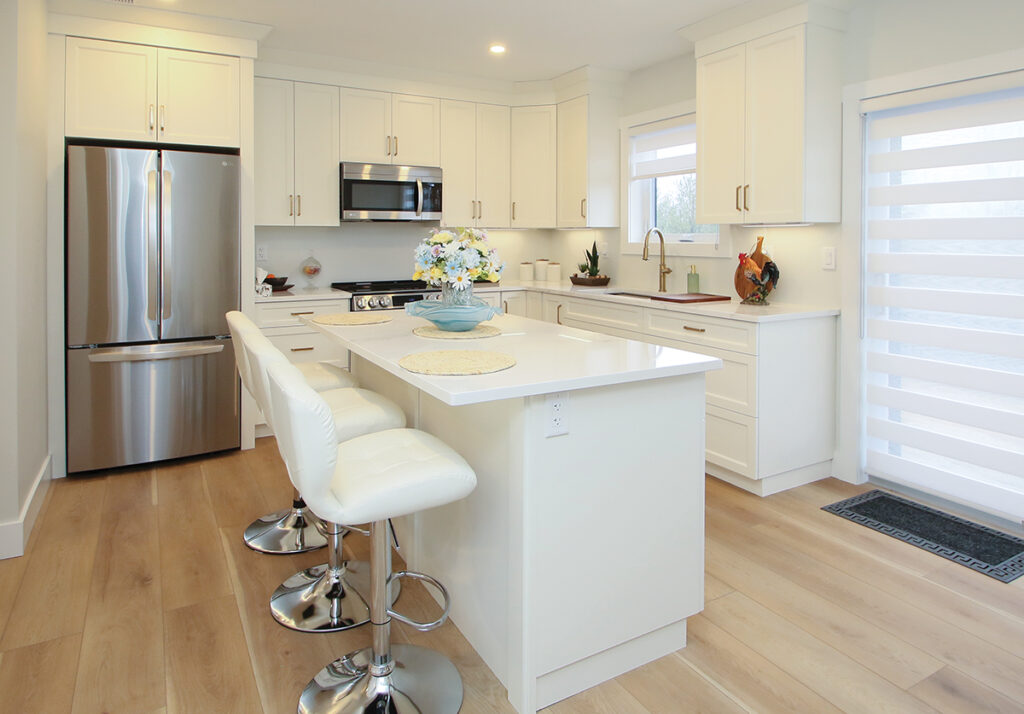 “You walk through the door and you are in the foyer,” the homeowner explains. “She has a bedroom with an ensuite. There is a spacious living room with a vaulted ceiling, a den, full kitchen with a center island. Mom has complete independence, which is very important to us. When she moved in, she said, ‘I’ll miss you guys!’ She is two hundred feet from our house.”