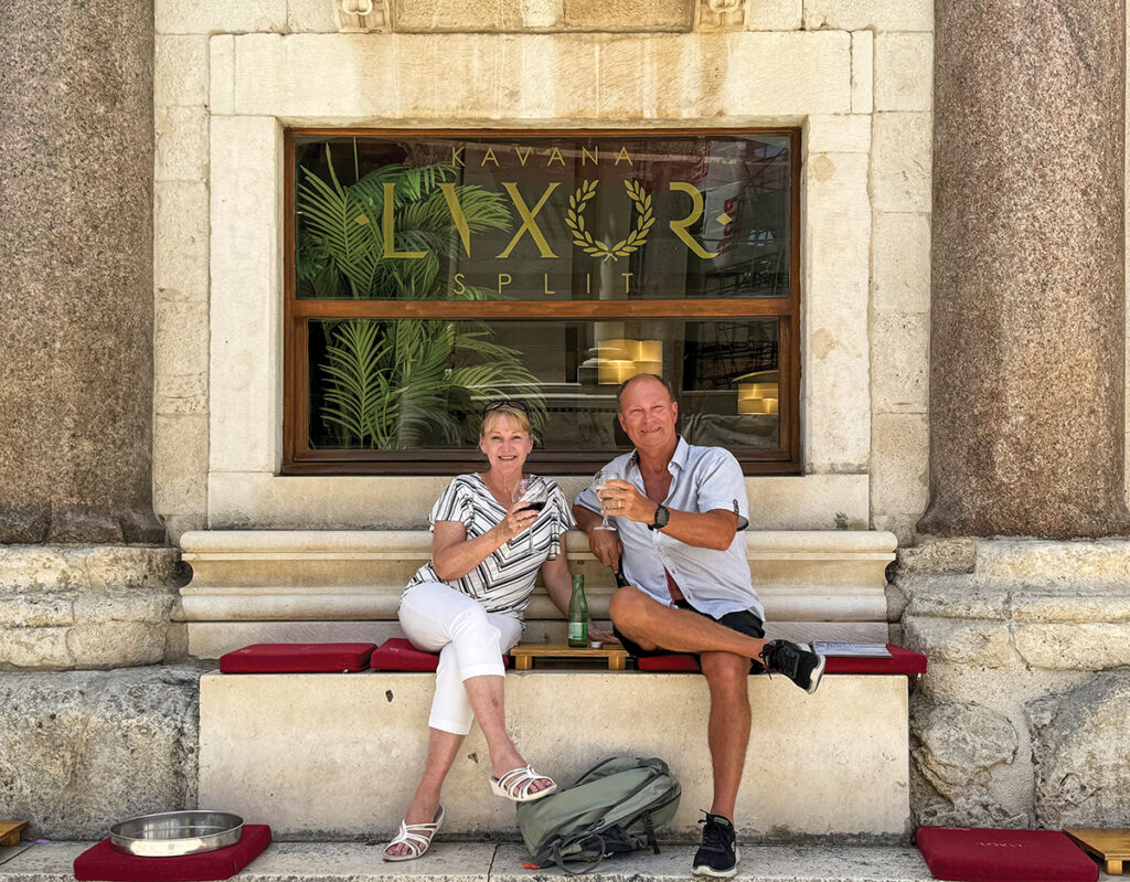When they travel, they’re really trying to get a perspective of how the locals live there, Bill says. The old town provides that, along with taking in the ancient part of the culture. Going into Split’s old town, like many old cities, you need to pass through an archway. It’s like going through a type of door into another world with little streets that feel more like narrow walkways. Here is where Pam and Bill saw the Marko Marulić Square or fruit market. “In most of Europe you get to see these bustling markets that are busy every day. People here don’t want frozen food, they want it fresh, so they go daily,” Bill says.